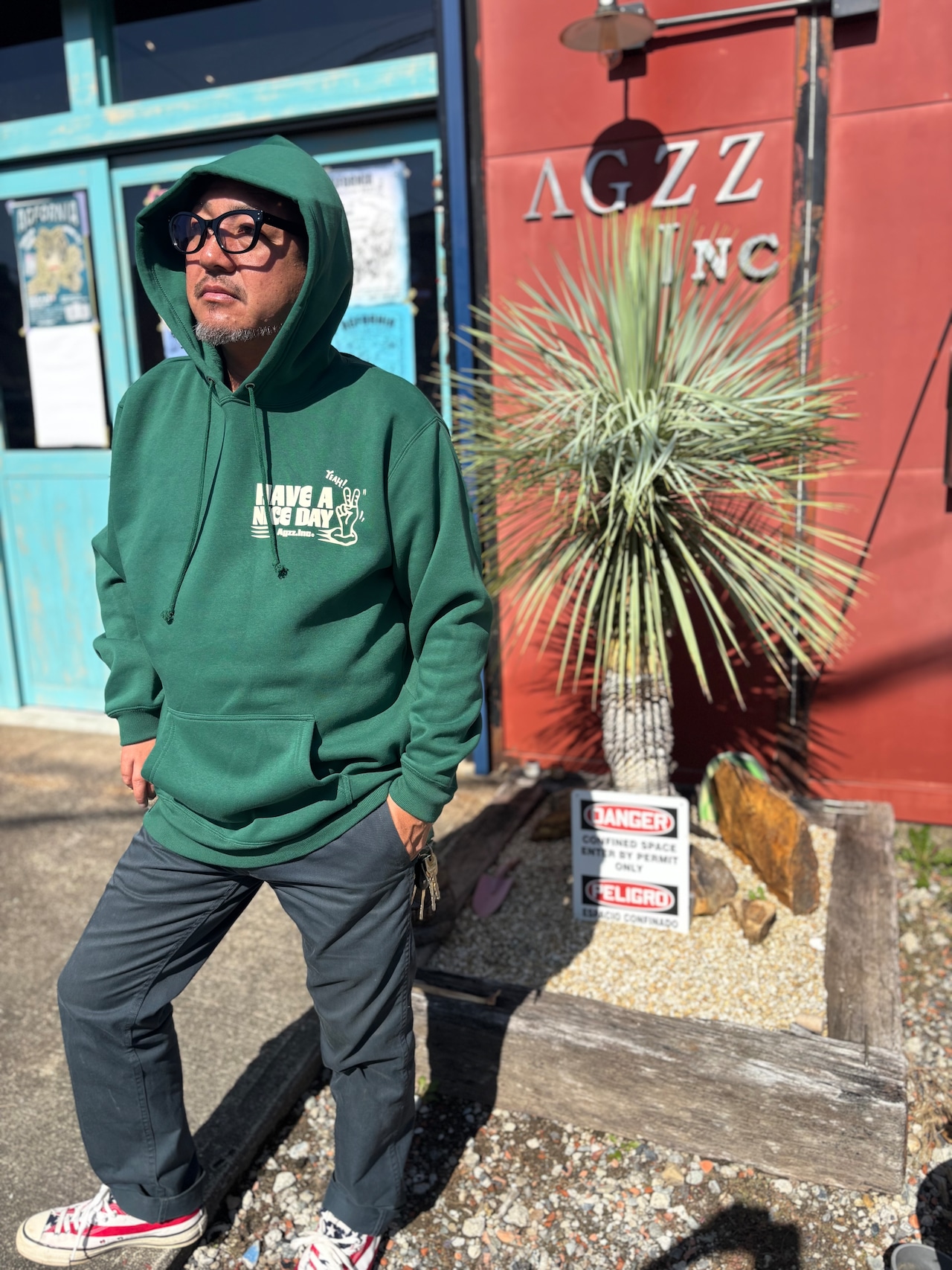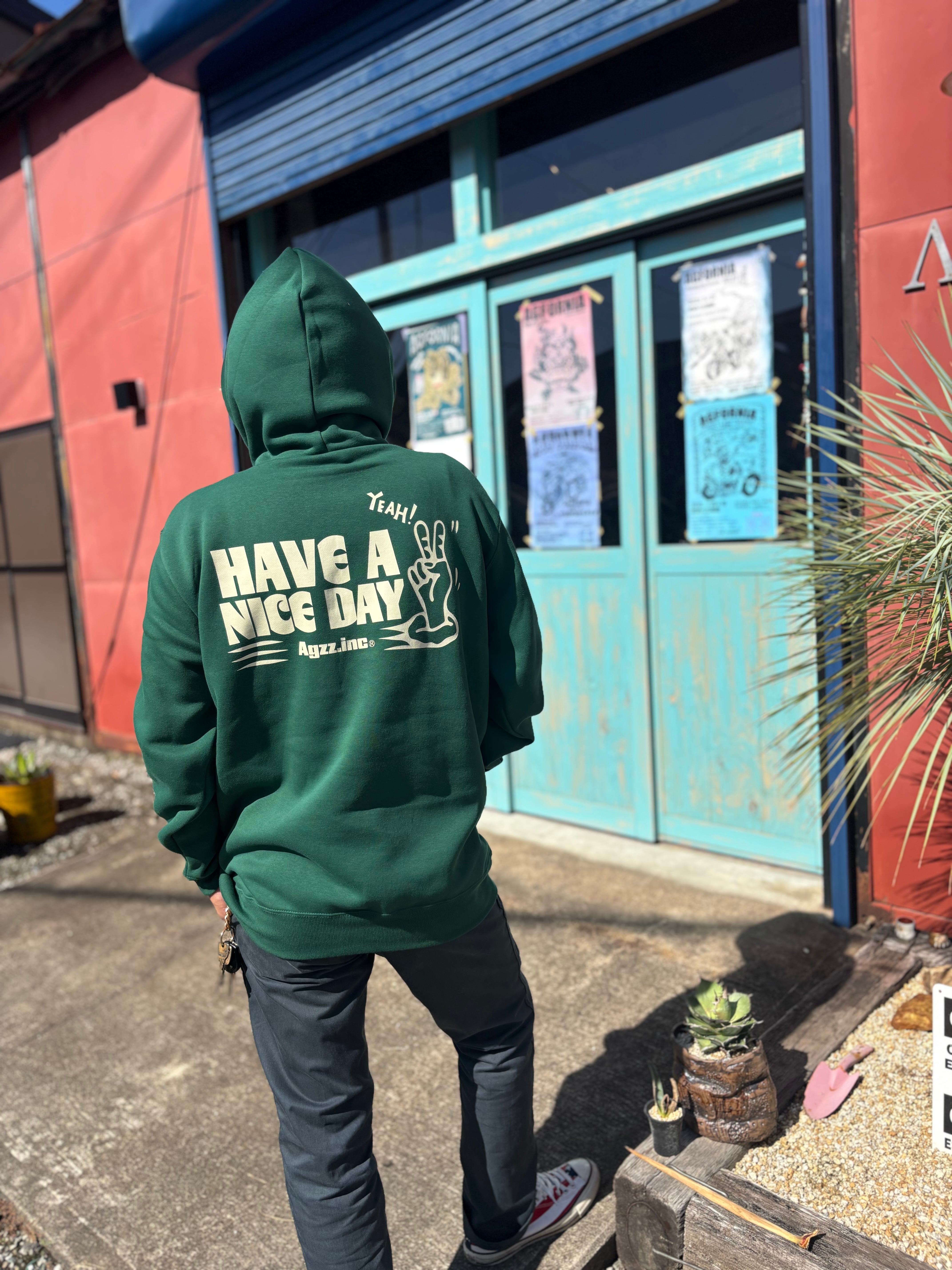 【Agzz.Inc】HAVEANICEDAY フーディー アイビーグリーン